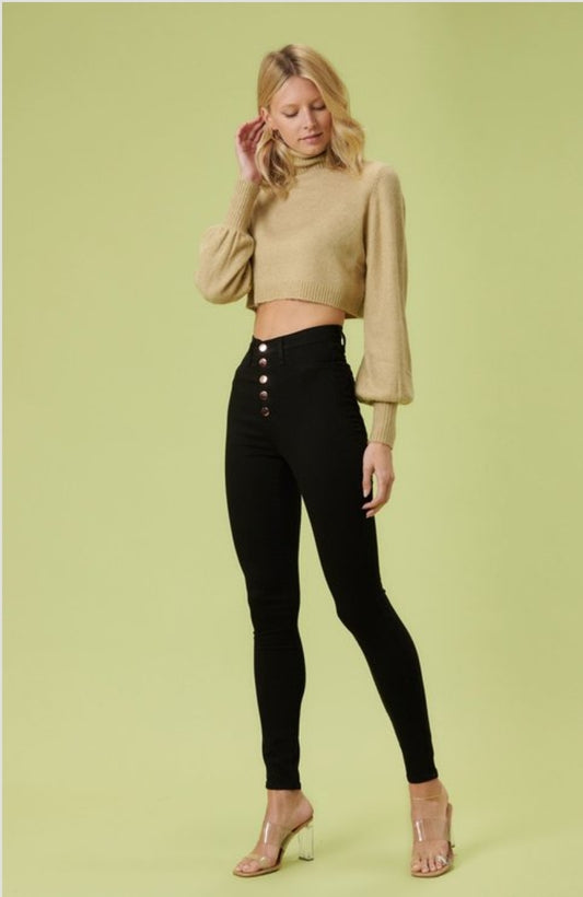 PANTALONES JEANS NEGRO VIBRANT CON BOTONES ROSE GOLD SKINY P-1242