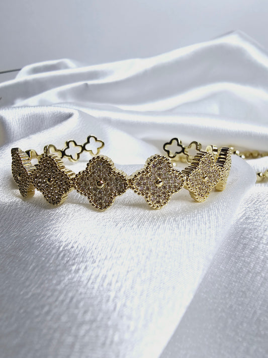 Pulsera se trebol diamantada ajustable alta calidad