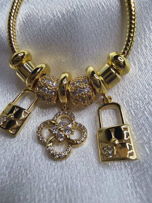 Pulsera con candado diamantada estilo pandora alta calidad