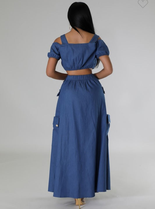 Falda larga con blusa en tela de jeans azul Set ref. 27317