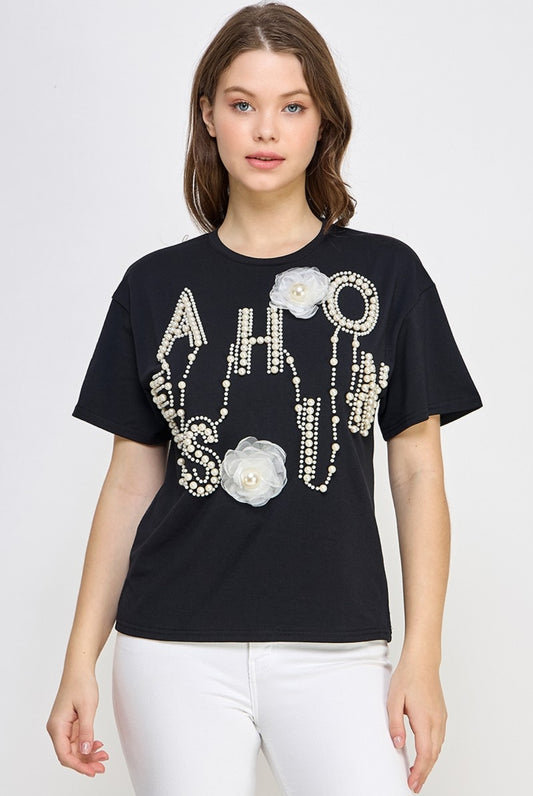 SET SWEATER AND PANTS BALBOA BABES SET BLACK WITH RHINESTONES